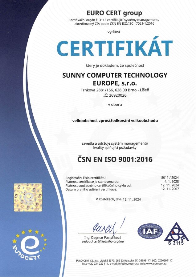 Ve společnosti Sunny Computer Technology Europe, s.r.o., je Systém managementu kvality zaveden již od roku 2007 a od té doby ho úspěšně obhajuje i při kontrolních auditech.